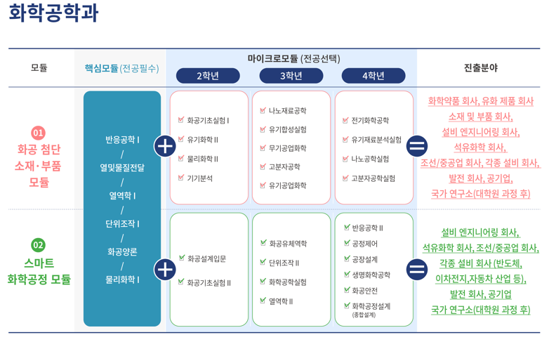 전공 마이크로모듈 예시(화학공학과 모듈 구성)